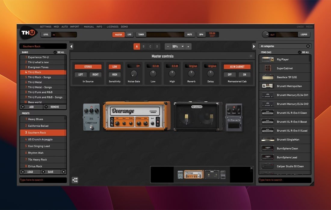 Overloud TH-U Premium for mac 屡获殊荣旗舰吉他放大器建模软件的新版本。TH-U拥有239款型号,是全球最大的单一合集,包含多达1000个预设,涵盖所有音乐风格。