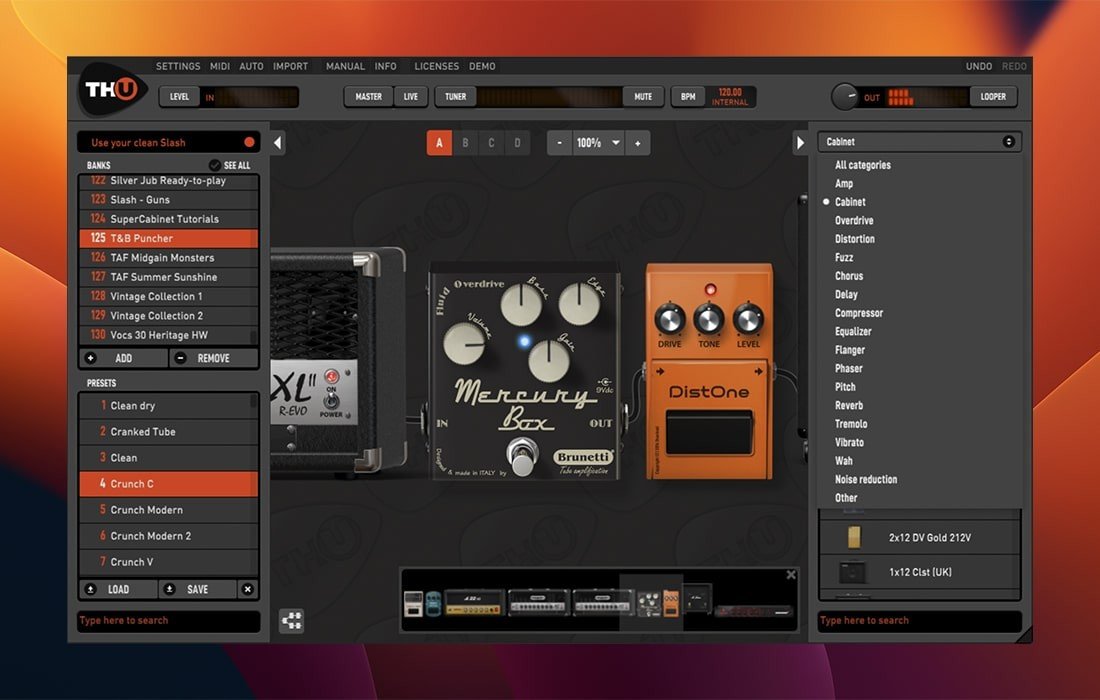 TH-U Premium内置SuperCabinet,这是一种基于Overloud流体卷积技术的革命性红外处理器,让你能够前所未有地创造箱体音色。