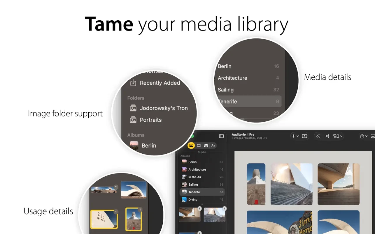 -版面会自动调整为放置的图像数量和任何图像更改